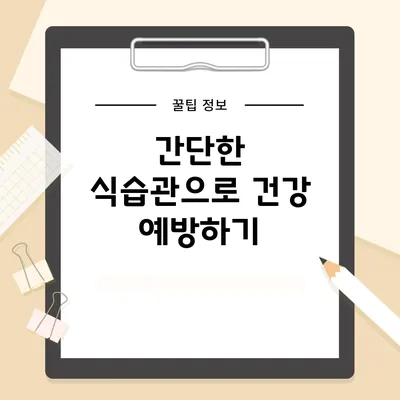 예방을 위한 심플한 식습관은 지금 당장 시작할 수 있는 간단하면서도 효과적인 방법입니다. 균형 잡힌 식사, 정기적인 식사 시간, 충분한 물 섭취 등 여러 팁을 통해 우리는 건강을 지킬 수 있습니다. 올바른 식습관을 유지한다면, 여러분의 건강은 한층 더 향상될 것입니다. 오늘부터 실천해보세요!