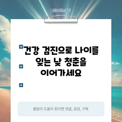건강 검진을 통해 나이를 잊고 젊음을 유지하는 방법은 여러 가지가 있습니다. 신체적, 정신적 건강을 모두 고려해야 하며, 이를 통해 삶의 질을 향상시킬 수 있습니다.